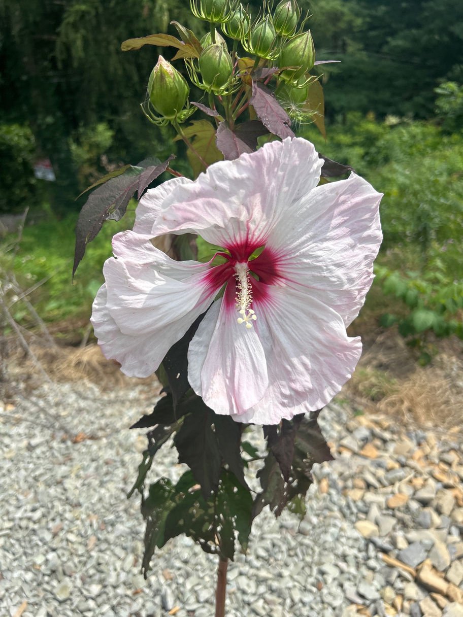 red eye on pink/white flowers Dark Leaves