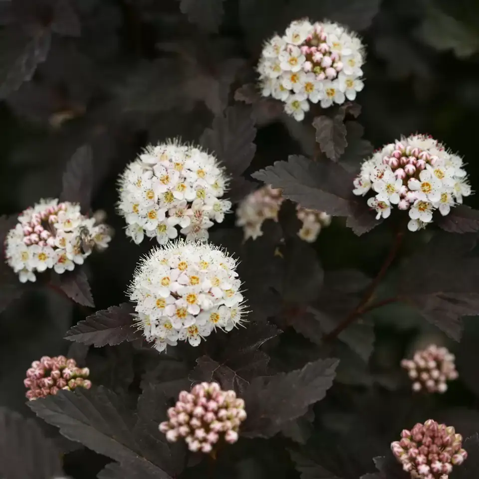 Introducing the stunning Physocarpus opulifolius 'Monlo', also known as Diabolo Ninebark. This beautiful deciduous shrub features deep burgundy leaves that add a dramatic pop of color to any garden. The Diabolo Ninebark is easy to grow and maintain, making it a perfect choice for both beginner and experienced gardeners. Reaching a mature height of 8 feet, this shrub is perfect for adding a bold focal point or creating a hedge. In addition to its striking foliage, the Diabolo Ninebark also produces delicate clusters of white-pink blossoms in the spring, adding even more visual interest to your outdoor space. Whether you're looking to enhance your landscape or create a low-maintenance garden, the Diabolo Ninebark is a must-have addition.