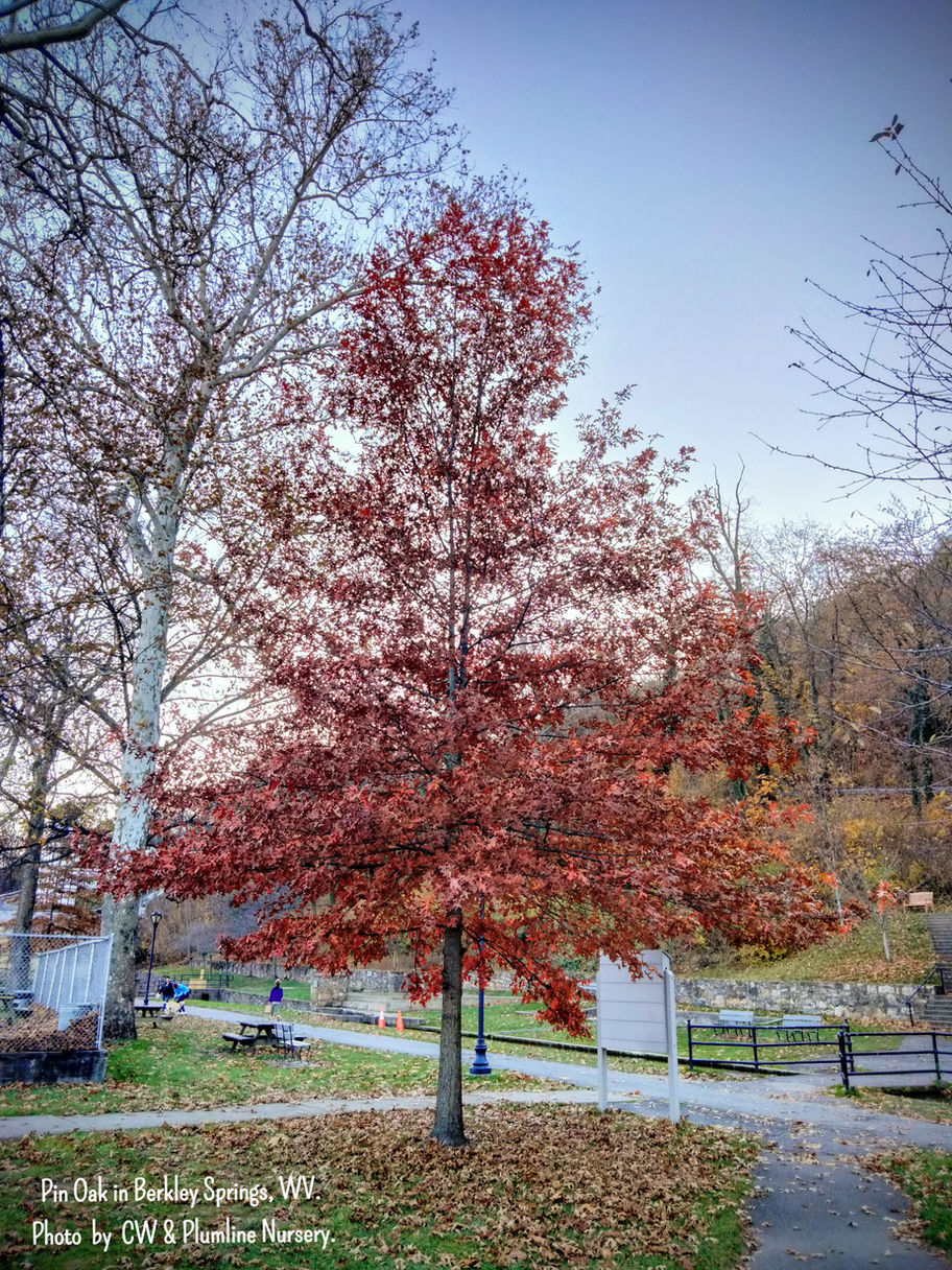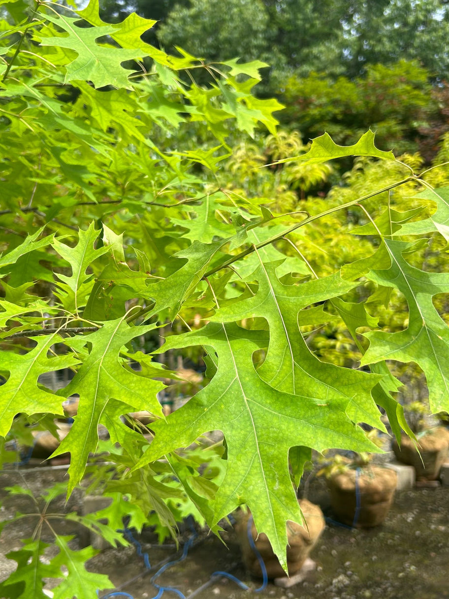 Discover the Quercus palustris - Pin Oak at Plumline, your trusted plant nursery. This majestic, fast-growing tree thrives in a variety of soils, offering vibrant fall foliage with striking red hues. Its strong, straight trunk and dense canopy make it a popular choice for shade and ornamental landscaping. At Plumline, we value quality and sustainability, ensuring our plants are nurtured with care. Enhance your garden with the elegance and durability of the Pin Oak.
