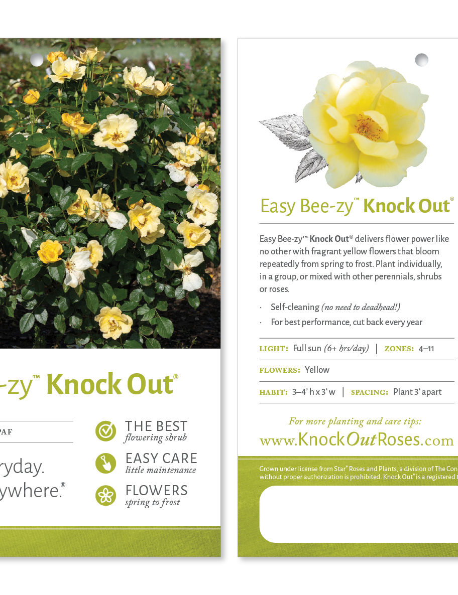 "Easy Bee-zy™ Knock Out® delivers flower power like no other with fragrant yellow flowers that bloom repeatedly from spring to frost. Plant individually, in a group, or mixed with other perennials, shrubs or roses."
